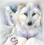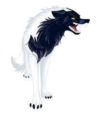 8.Внешность белый волк с чёрной мордой и грудью голубые глаза